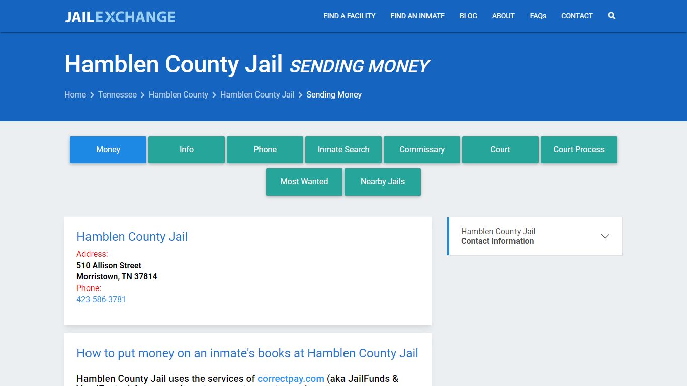 https://www.jailexchange.com/city-and-county-jails/tennessee/hamblen-county/hamblen-county-jail/sending-money-and-inmate-commissary